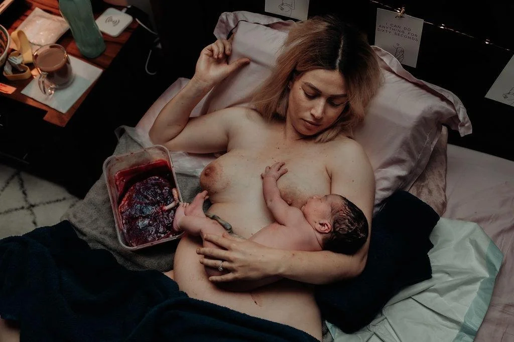 I got up into the bed and Alex noticed that my membranes hadnβt come out intact. She tried to get them to release naturally but I decided to have an injection to help things along. She put a catheter in and drip in my arm to help assist if I started to bleed. Brent made me something to eat and drink and we sat on the bed soaking up our baby girl.